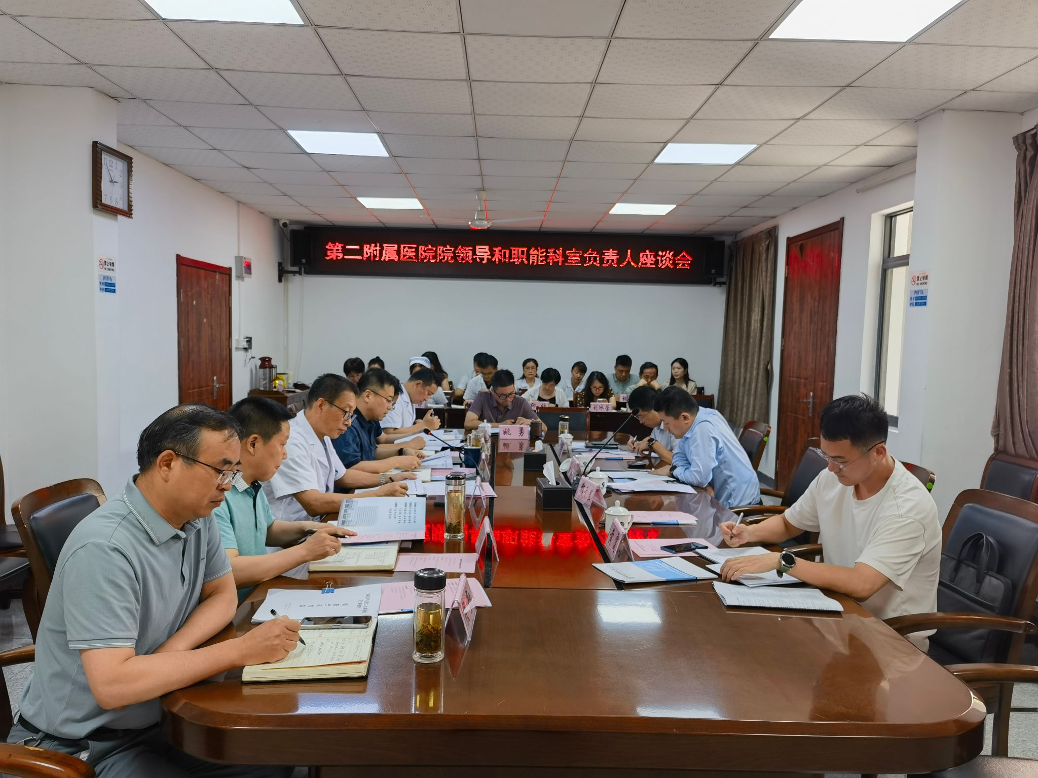 医院管理处负责人,第二附属医院党政领导班子、相关职能科室负责人、临床科室主任、护士长和青年医师代表参加座谈会。(黄霆/文 第二附属医院/供图)